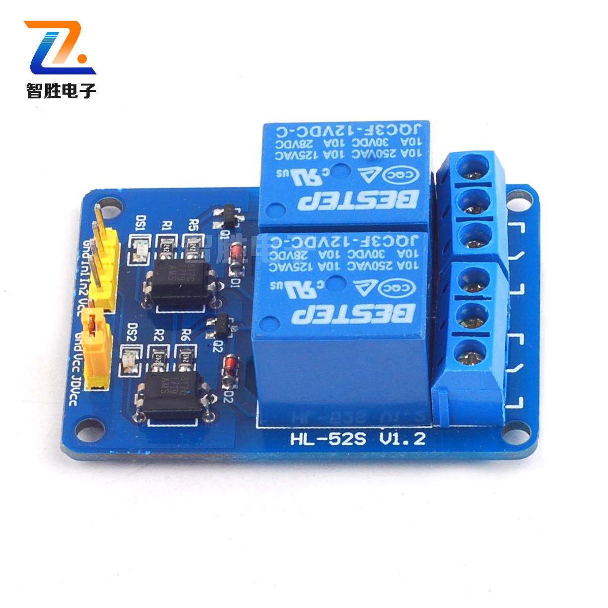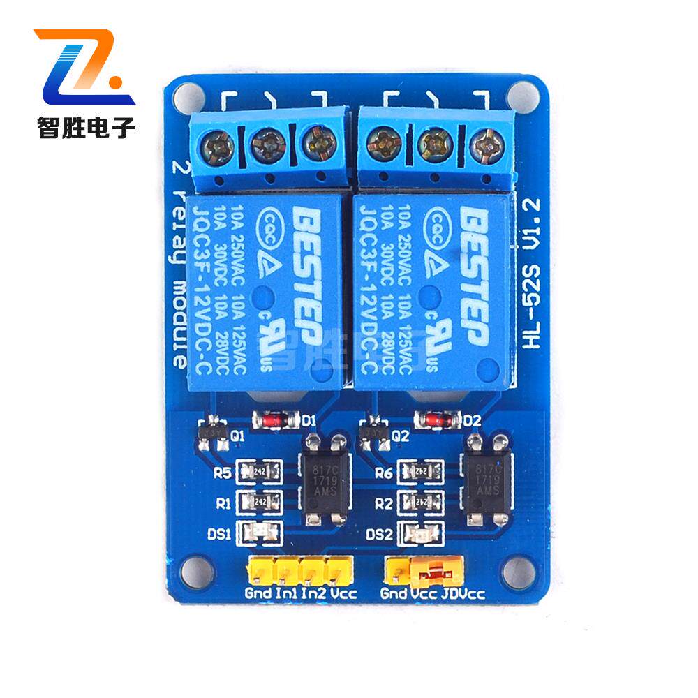2 way electromagnetic relay module 3v5v12v24v optocoupler isolated low level trigger with indicator light blue board