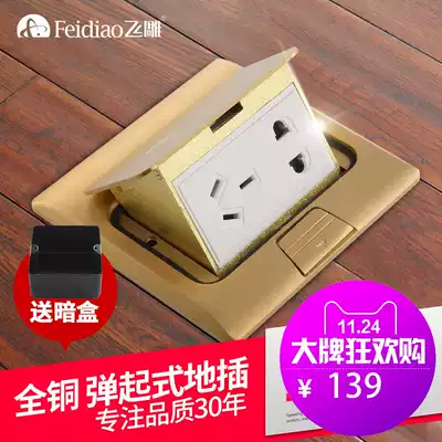 Flying carving ground socket all copper waterproof hidden five-hole household switch socket non-damping power supply two or three plugs