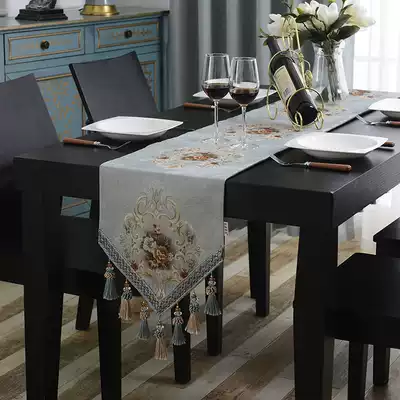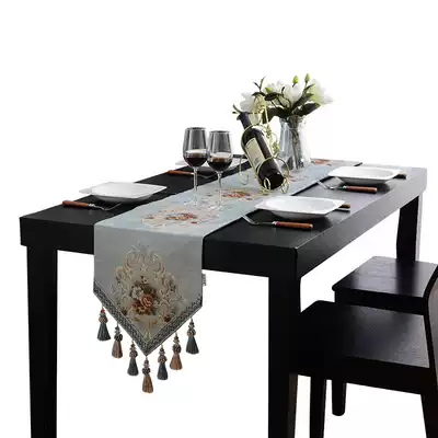 European-style tablecloth fabric Dining table decoration cloth American TV cabinet Bucket cabinet Shoe cabinet Tablecloth Coffee table tassel Blue long strip