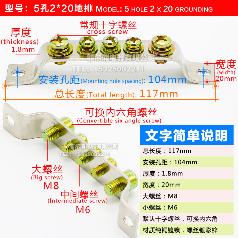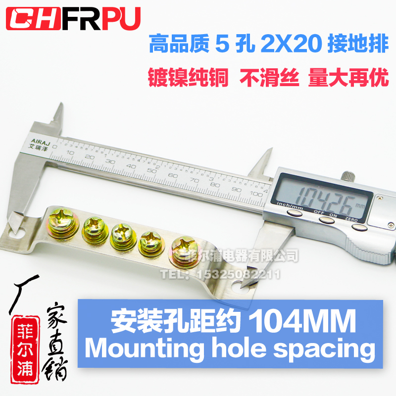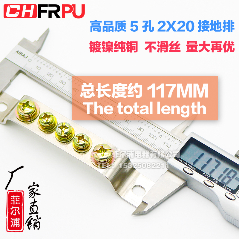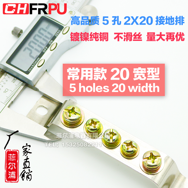 Manufacturer pure copper 5 hole ground row 2*20 thickening five holes 20 width zero rows non - slip distribution box grounding copper bar