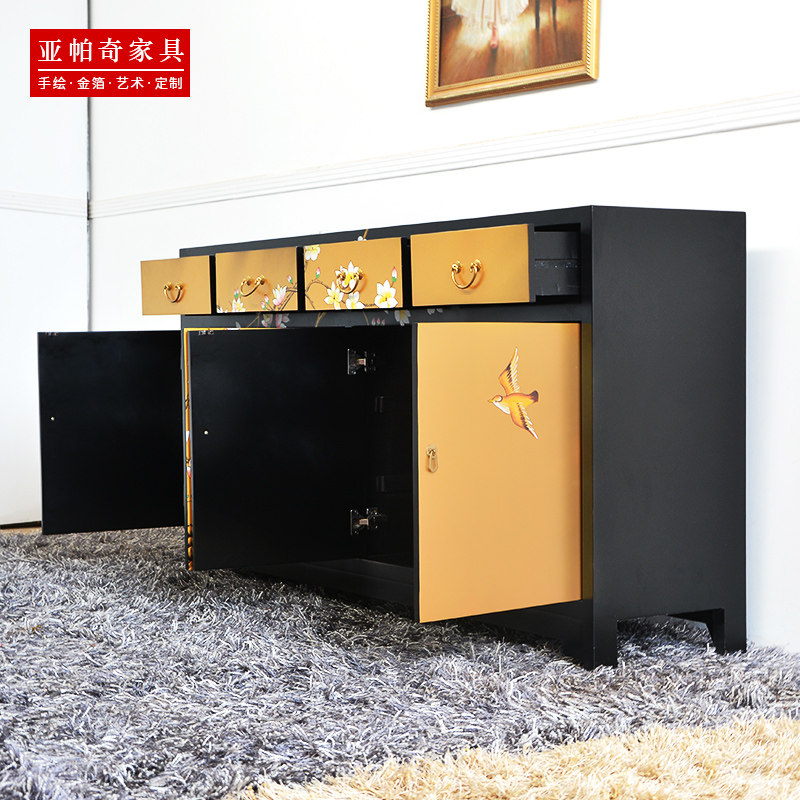 New Chinese-style modern dining cabinet flower and bird porch cabinet painted living room foyer sofa back against cabinet decorative cabinet model room cabinet