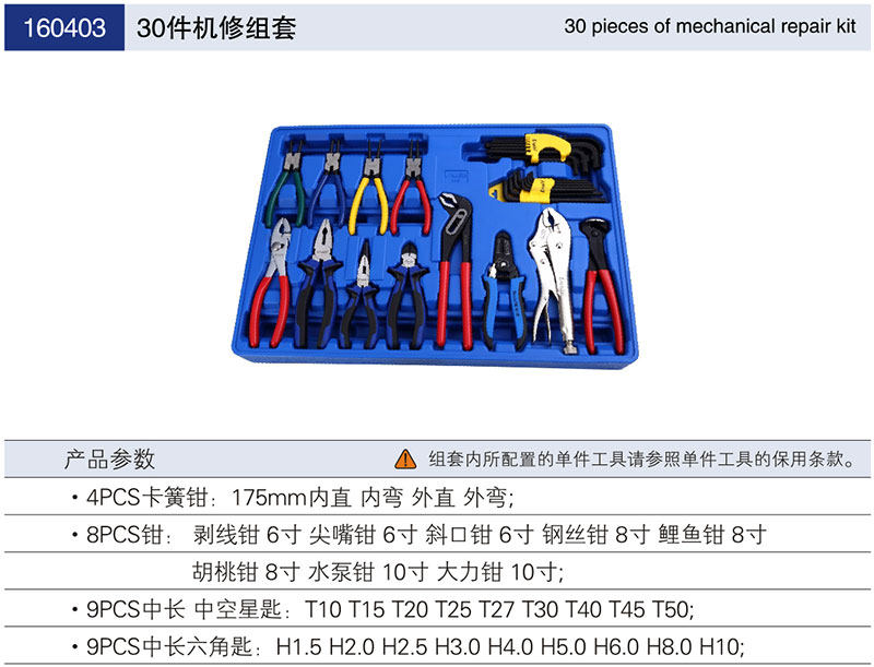 Taiwan's 30-piece machine repair set auto repair tool set circlip pliers rice word star with middle hole inner hexagonal forceps