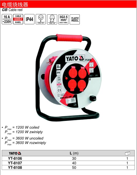YT-8106 30 meters YT-8107 40 meters YT-8108 50 meters