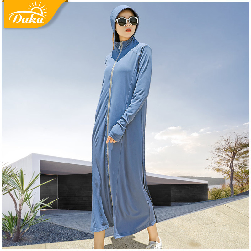 Duka sunscreen clothing long version fairy hooded medium and long version anti-UV Korean windbreaker summer thin jacket long sleeve