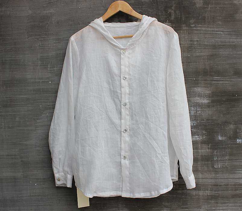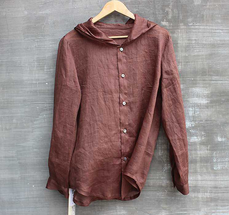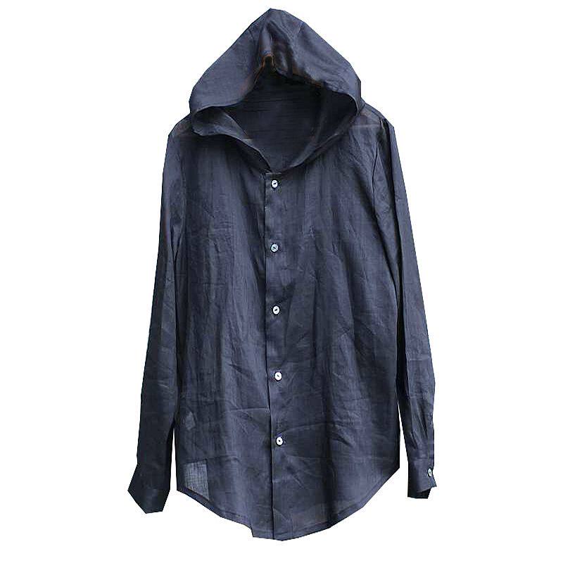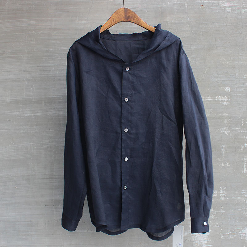 Chinese style Men's Chinese retro hooded cotton and linen shirt Large size linen shirt Men's loose long-sleeved top t-shirt