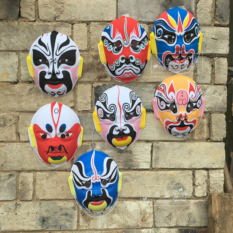Kindergarten blue and white porcelain Chinese wall decoration classroom corridor hanging decoration Peking Opera facial makeup creative background cloth pad decoration