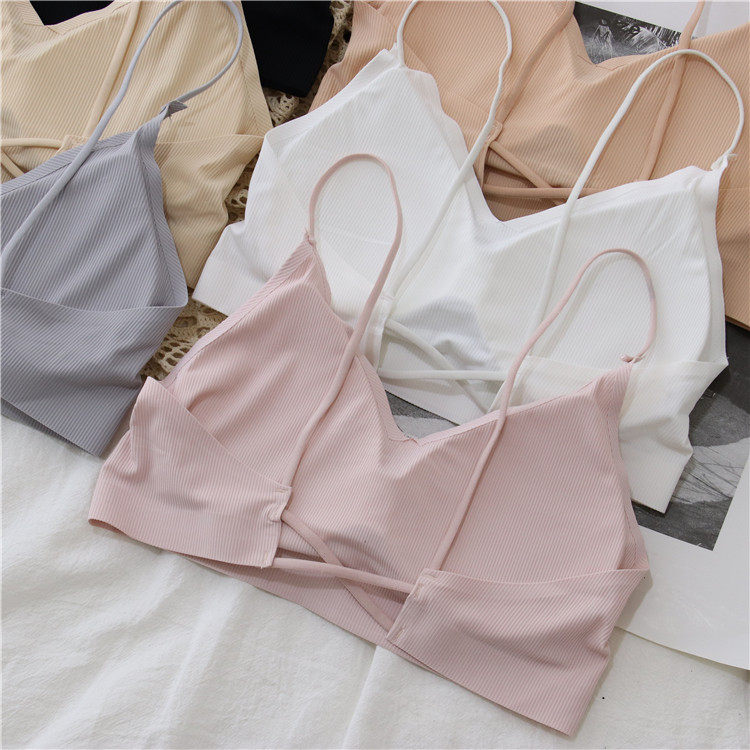 Summer ice silk unscratched with chest cushion harness slim shoulder strap waistcoat bottom anti-walking light underwear wrap breasted breast bra