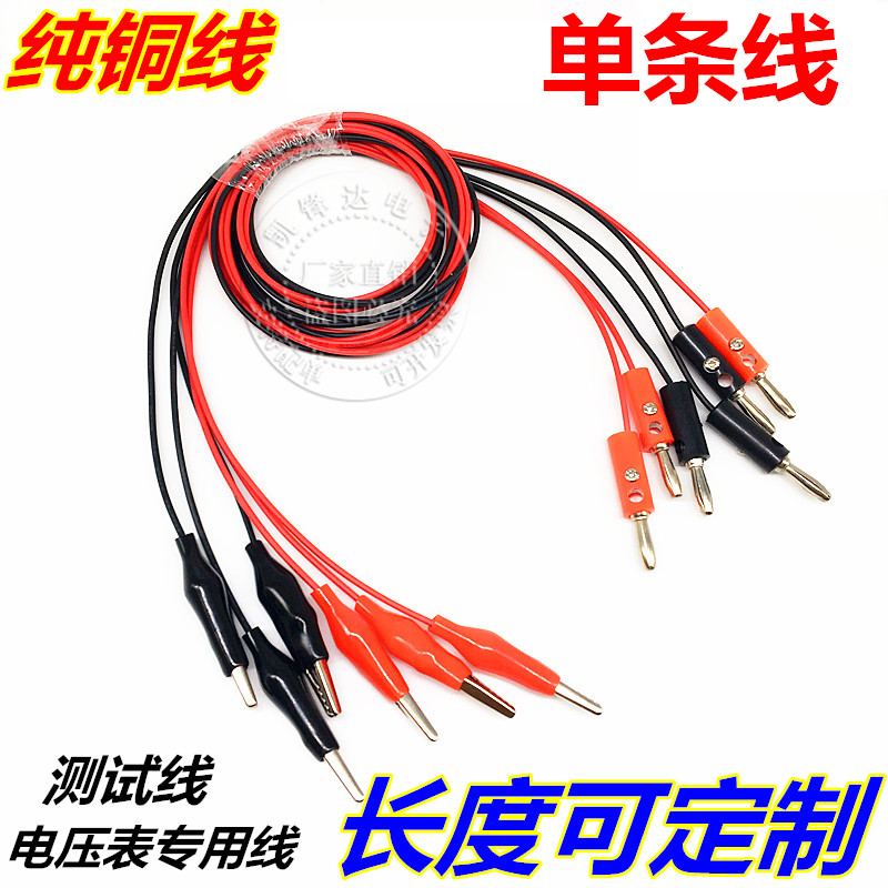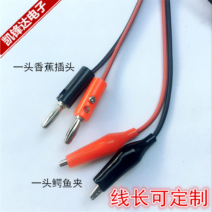 Banana plug to crocodile clip line Power test lead 2 plugs to 2 clips red and black lines 1 meter long