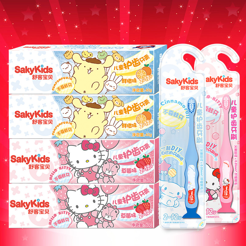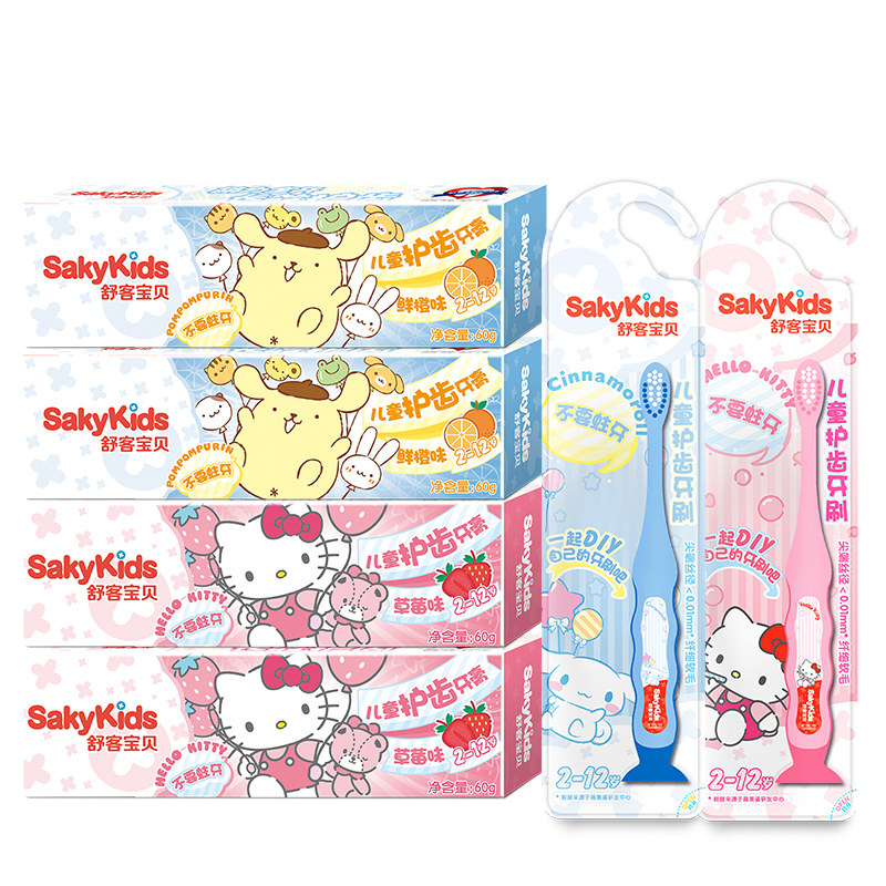 Shuke Shuke children's toothpaste*4 Toothbrush*2 Set 2-3-6-12-year-old baby child Male and female children low fluoride