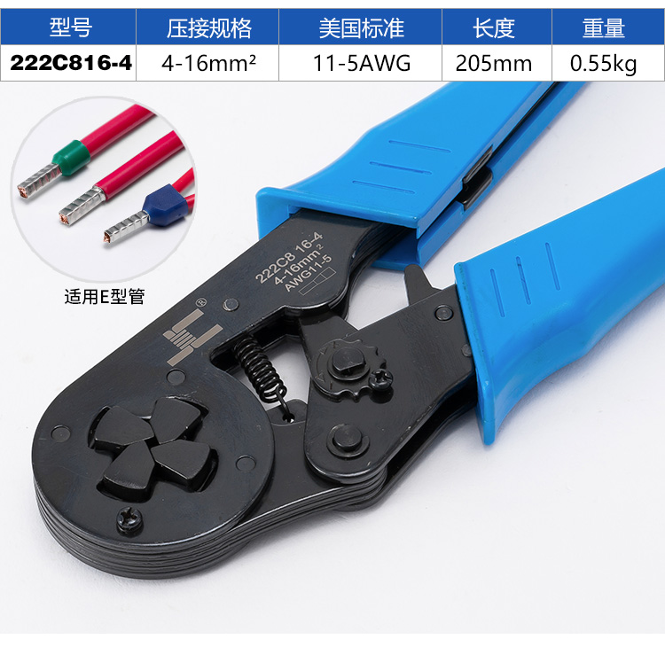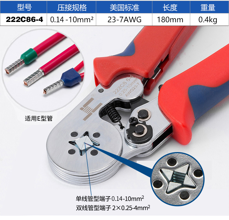Self-adjusting E-type tube-type needle-type Double-tube terminal crimping pliers Crimping pliers Cold-pressing pliers Wire pliers Hexagonal quadrilateral
