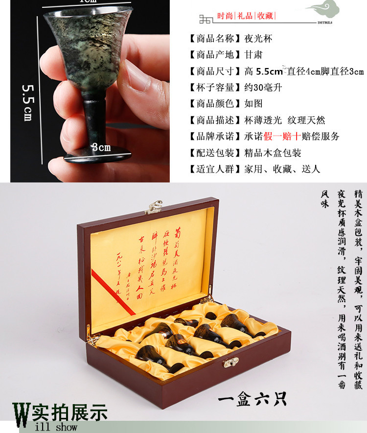 Jiuquan luminous cup Qilian jade luminous cup Wushan Mandarin duck jade Gansu Hedian jade carving goblet wine glass ink jade pot