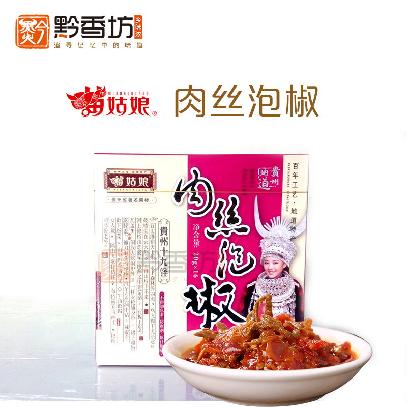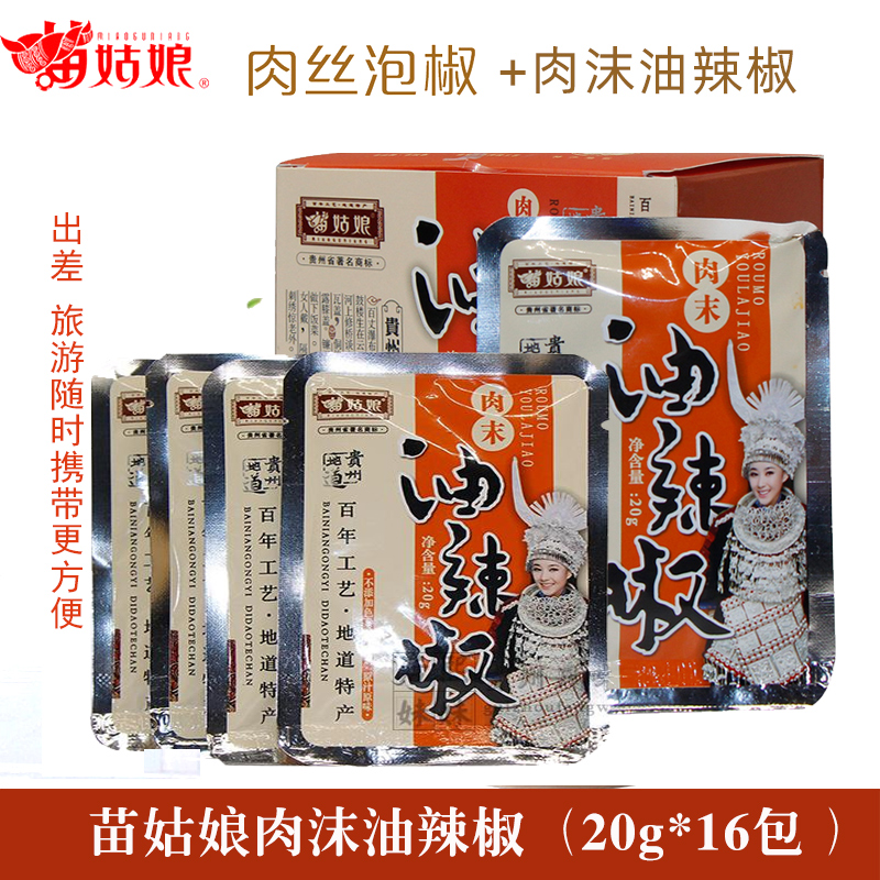 Miao girl pickled pepper shredded pork pickled pepper oil chili gift box Guizhou specialty aviation oil chili 20g*16 bags
