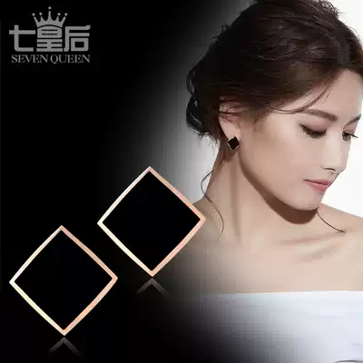 Black titanium steel cold wind ear needle female geometric earrings temperament Korean personality simple wild 2020 New Tide