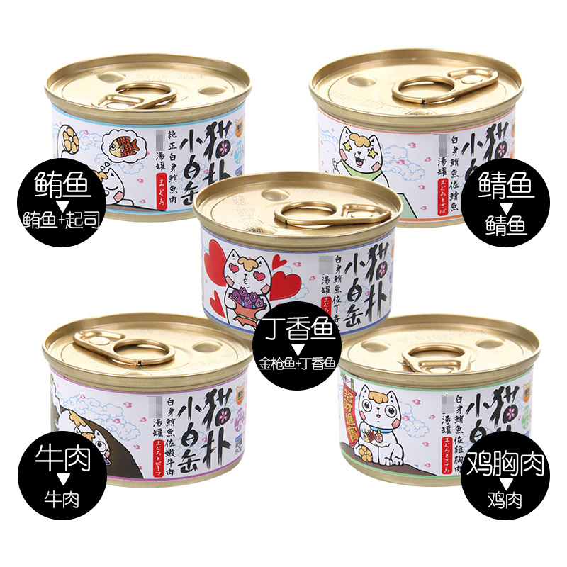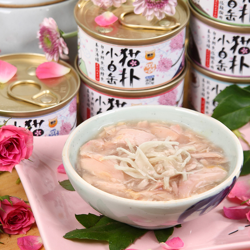 Cat Bashing Small White Jar Soup Pot 80g 6 Cans White Body Tuna Series Cat Canned White Meat Wet Grain Mixed With Snack Foods
