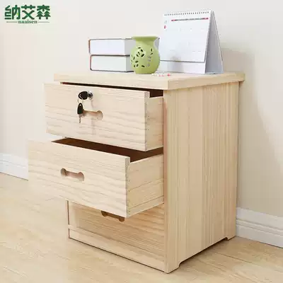 Solid wood lockable bed cabinet Simple bedroom bed side small cabinet Single small multi-layer storage cabinet Three-layer drawer type