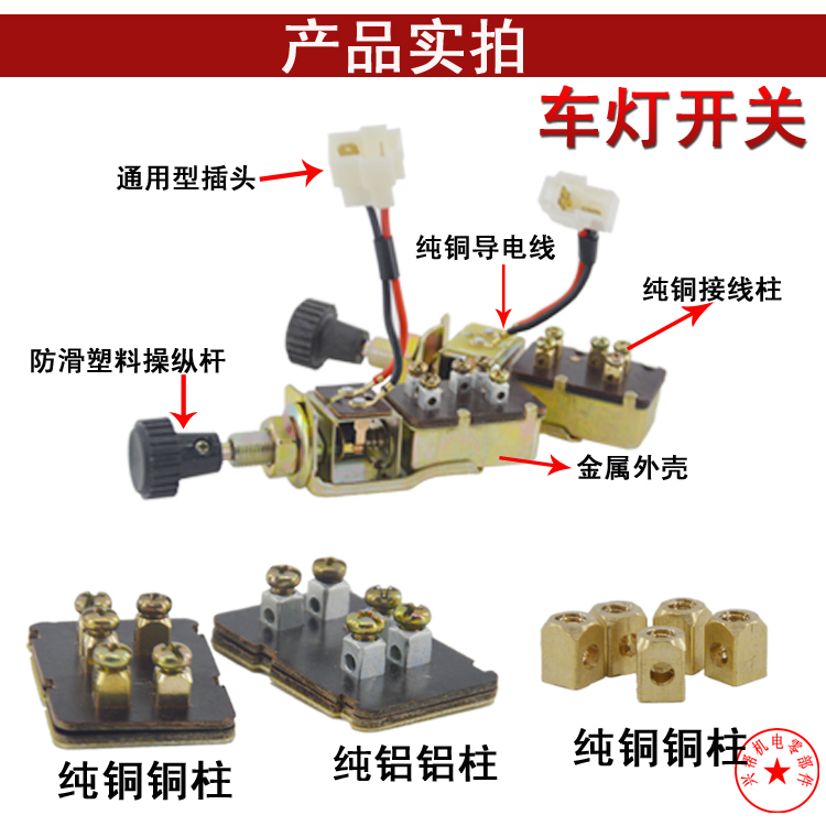 Aluminium column car lights switch pure copper-copper column switch