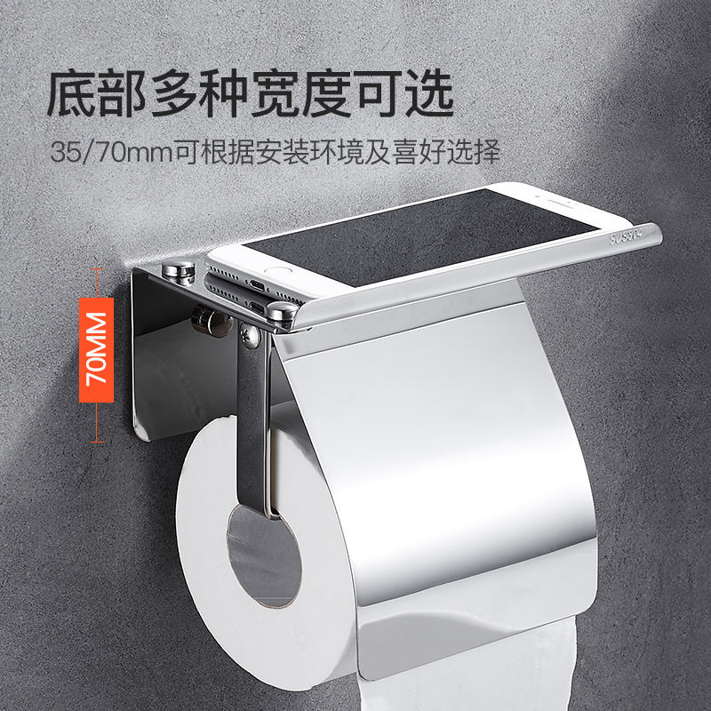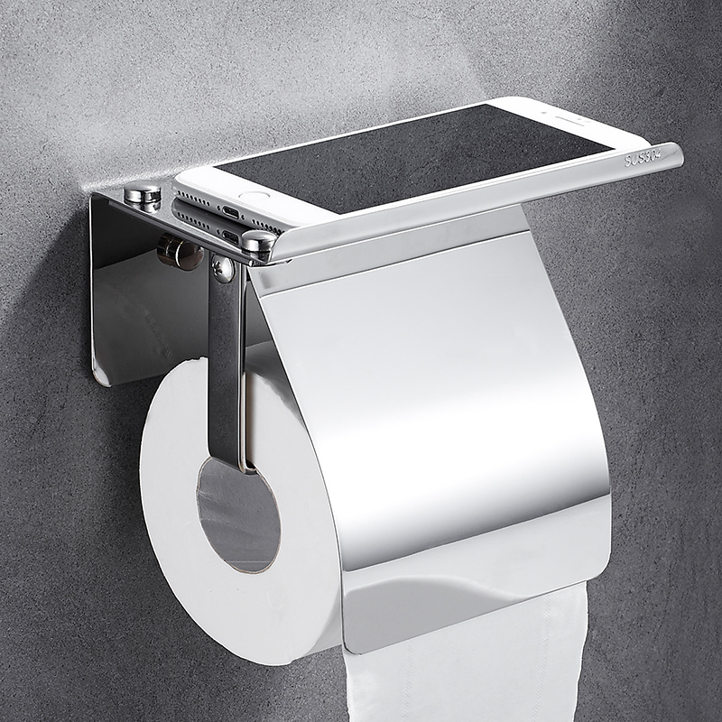 Roll toilet paper holder 304 stainless steel powder room mobile phone shelf Toilet toilet paper box Wall-mounted tissue holder free hole