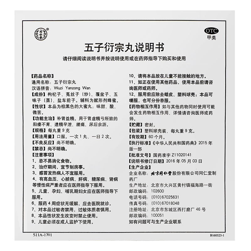 Tongrentang Five Sub perfuncitum Impotence Premature Ejacinar 5 Subway Zongzi Lumbago Traditional Chinese Herbal Medicine Five titles Zongqi Maruchi Flagship Store
