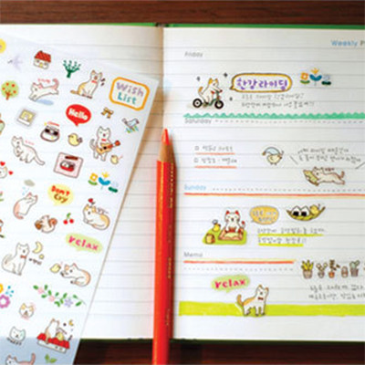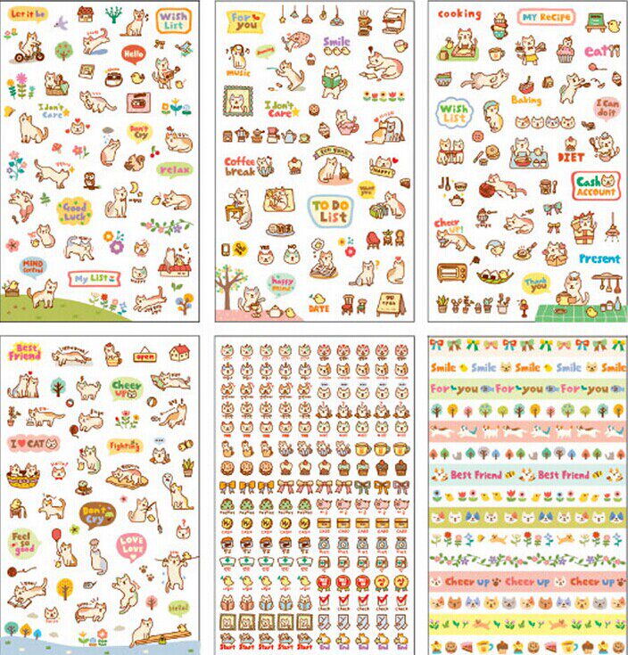 The Japan-ROK version of the new Katong people's qi creative kitty PVC transparent diary expression stickers for a total of 6 pieces