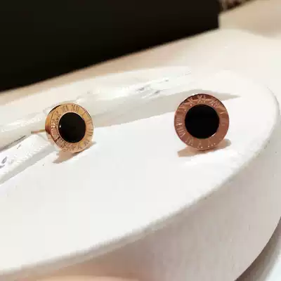 European and American classic earrings personality fashion versatile temperament simple shell Roman numerals titanium steel round ear needle for men and women
