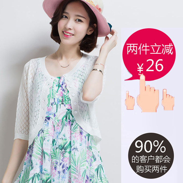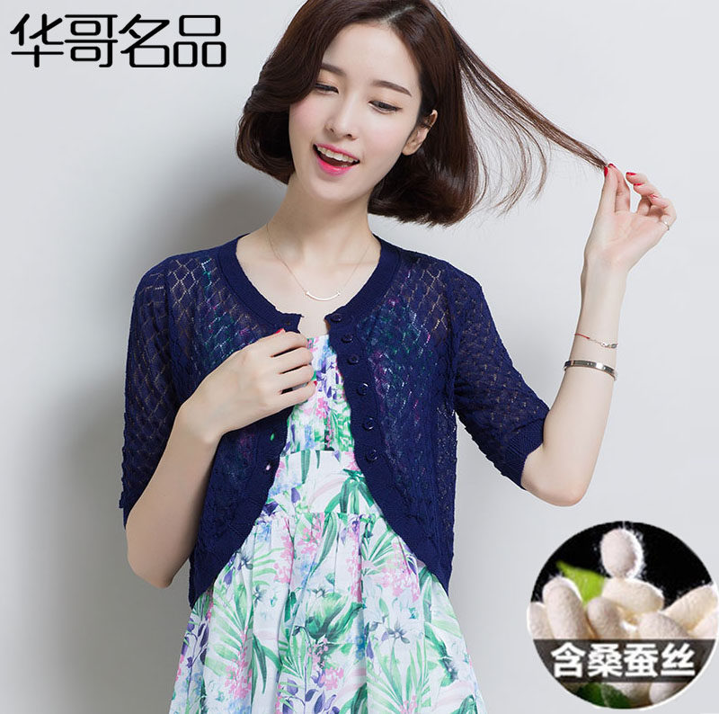 Summer sun-loose small outer and shoulder thin air-conditioned shawl coat short sleeve knife sweater tide