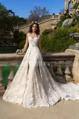 2020 new luxury lace shoulder fishtail detachable tailing Moren Super fairy bride wedding dress big size