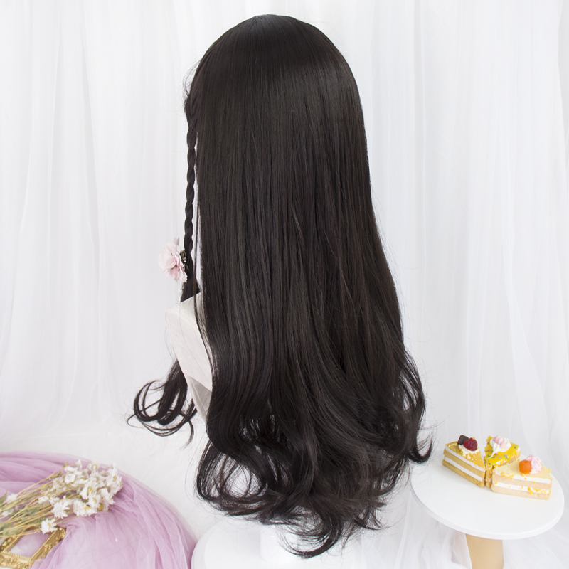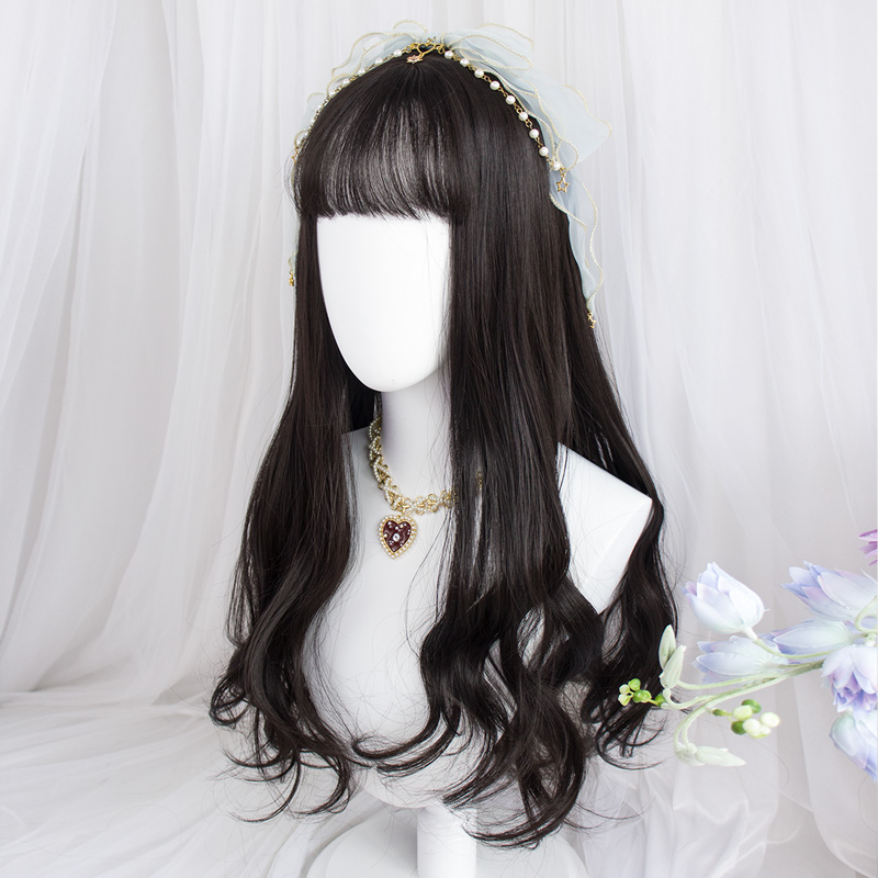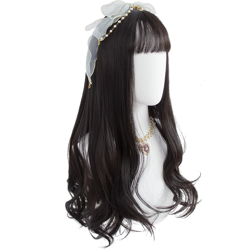 Summer Wig Woman Long Curly Hair Air Livey Round Face Large Wave Emulated Scalp Black Natural Whole Headgear