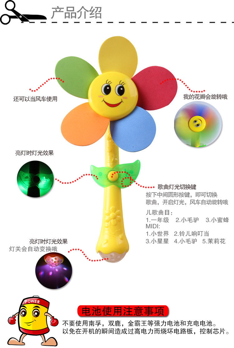 Baby children's toys Electric windmill 0-1-3 years old music stick Turn music early education puzzle for boys and girls holiday gifts