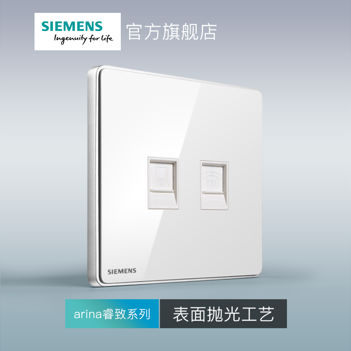 Siemens switch socket panel Ruizhi titanium silver frame Two-digit six-class telephone computer official flagship store
