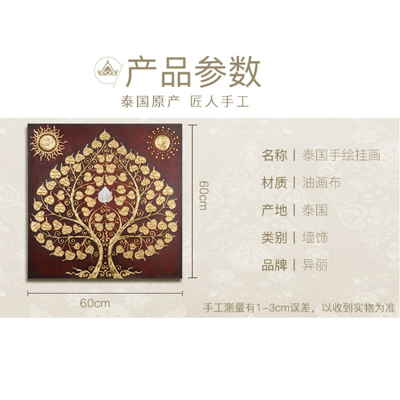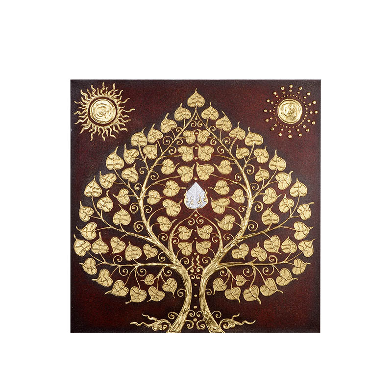 Southeast Asian frescoed Tai style gold leaf hand-painted hanging drawing room sofa Background wall Xuanguan Corridor Bodhi Tree Decorative Painting