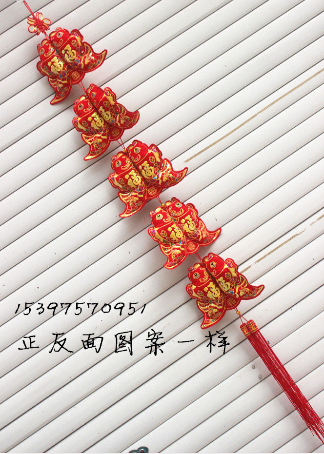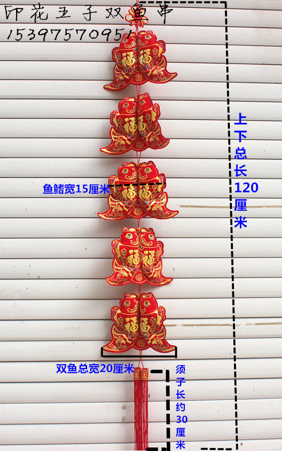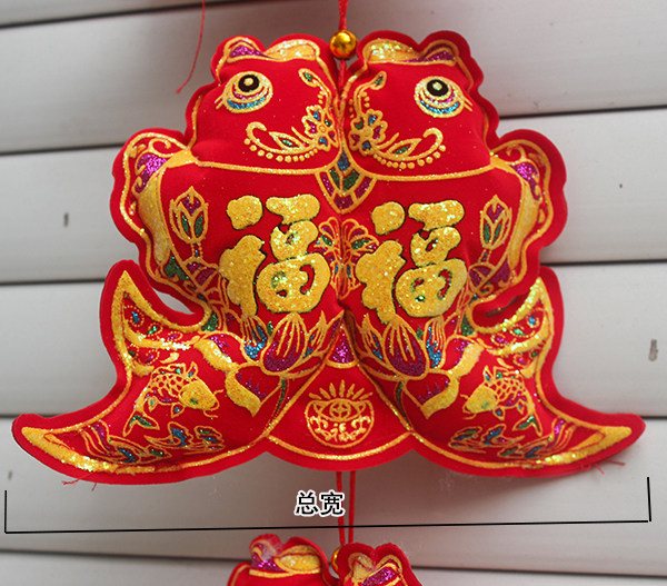 Suede bronzed gold Seven colorful double fish string printing China knots the five-son double fish pendants wedding celebration New Year's holiday decorations