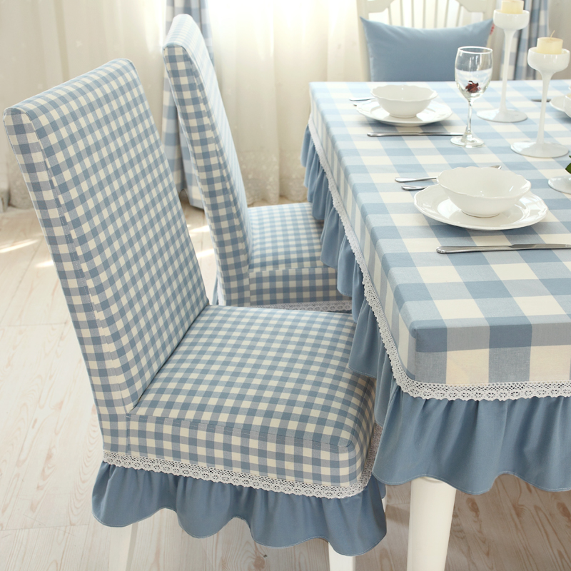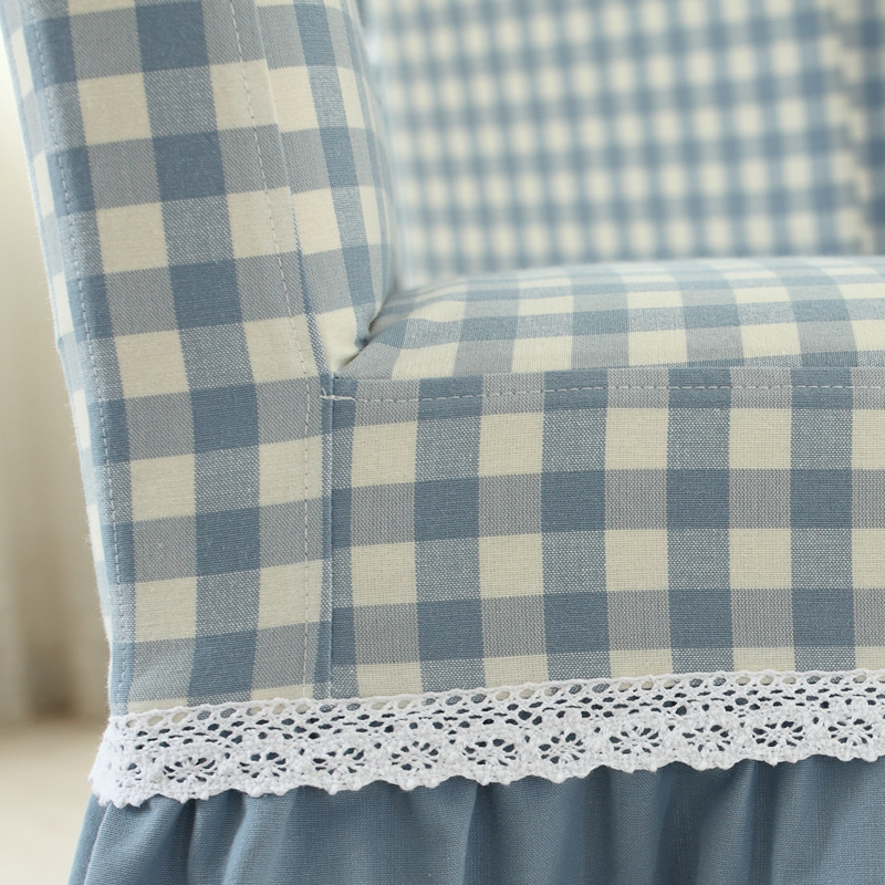Lake blue solid color Small lattice I-shaped pleated skirt with a chair cover Lake blue large lattice lace skirt with a chair cover (customized reference price) Lake blue small lattice chair cushion Small lattice chair back cover Lake