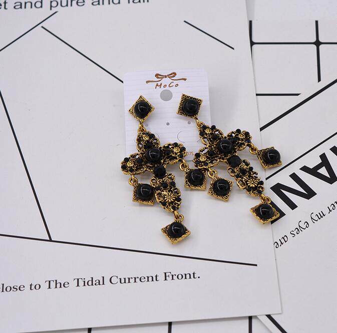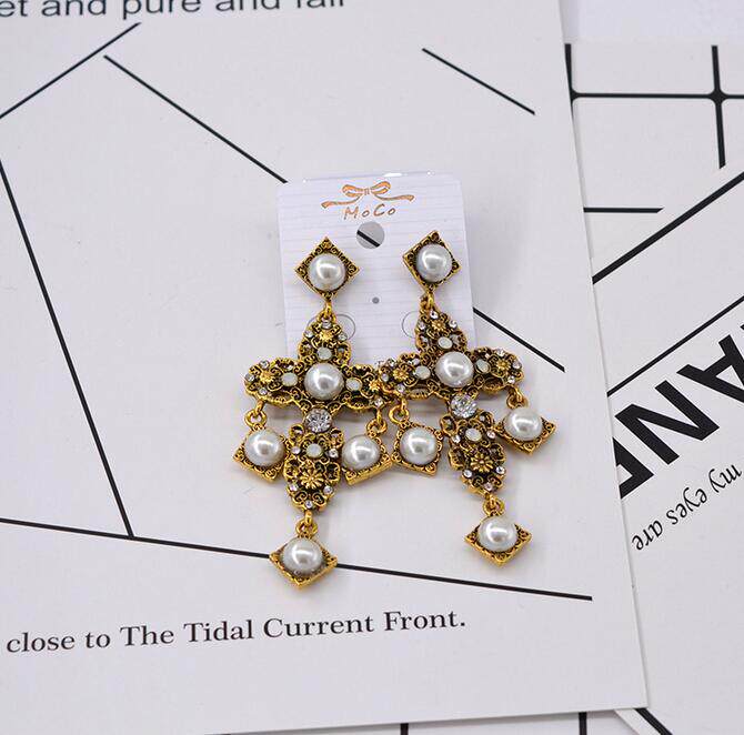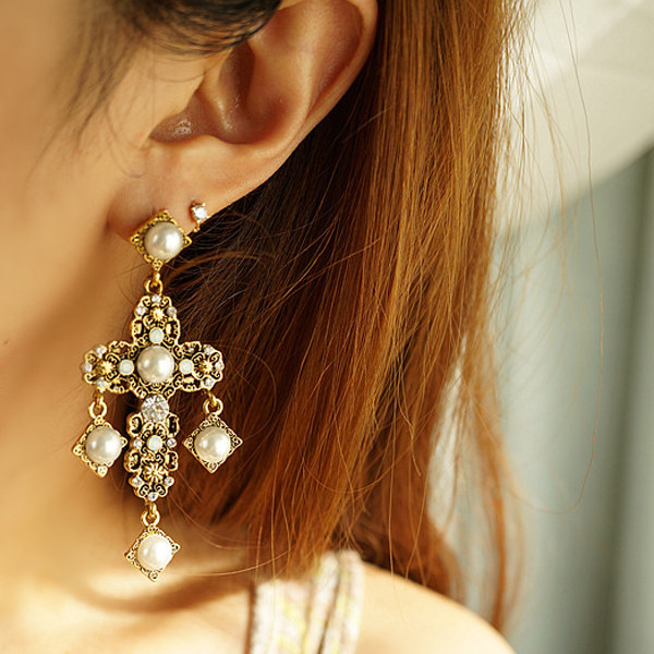 European And European Retro Baroque Pearl Pendant Cross Insert Diamond Earrings Pearl Ear Nail Bridal Accessories