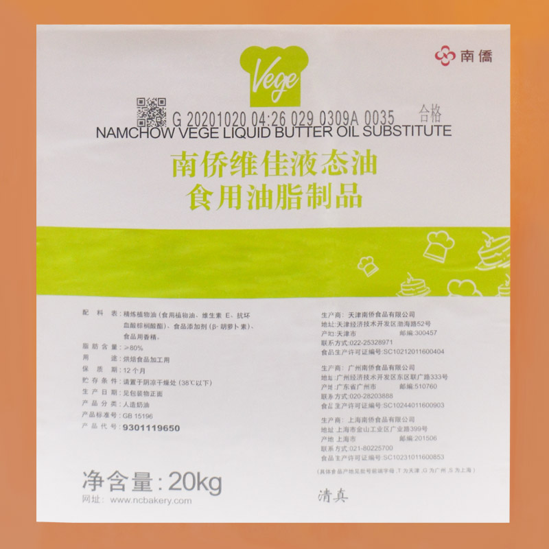 Nanqiao Weijia liquid cream rubber barrel 20 kg original Nanqiao margarine shortening