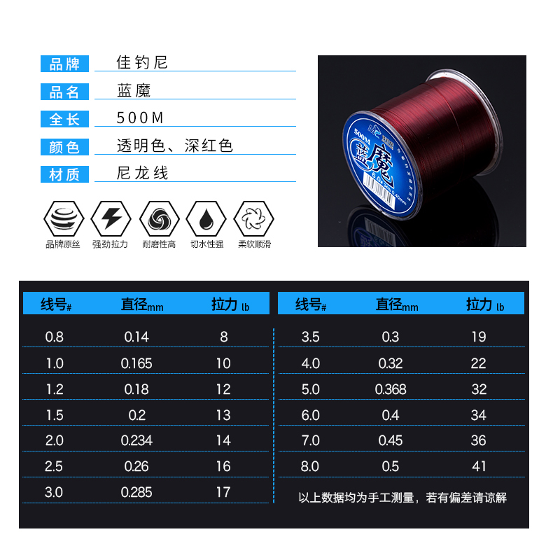 Good fishing Ni 500m fishing line Competitive main line Nylon line Strong pull sea rod Sea fishing line Specialty