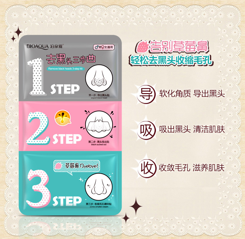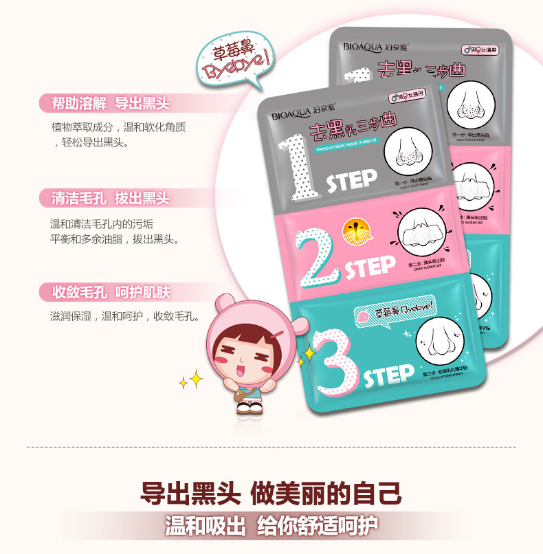 Paiquan Ya Go black head, pig nose stick nose membrane three - step curved nose suction black head contraction pore T area nursing