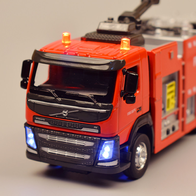 Children's alloy engineering car model Fire - fighting tank rescue truck fire - fighting cloud trailer ascending fire truck toy