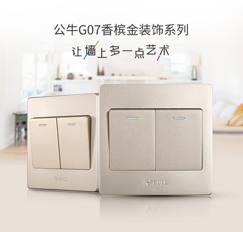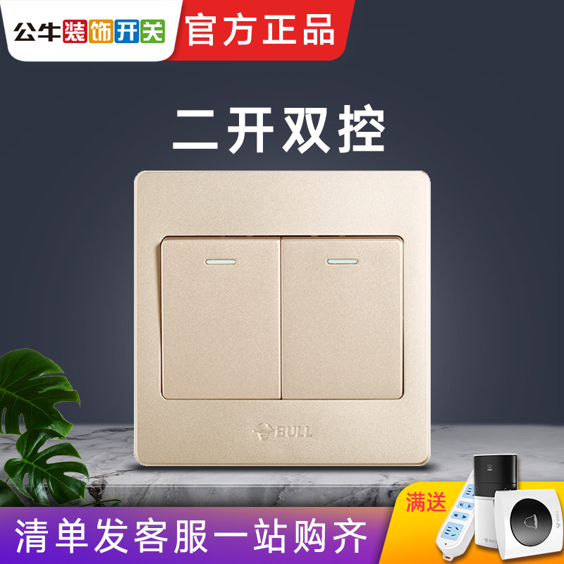 Bull two open double control light switch panel home dark installation 86 champagne gold double open double decorative decorative switch socket
