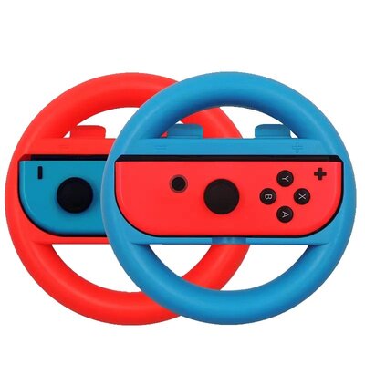 Red Blue Steering Wheel A pair of black one-on-one steering wheels