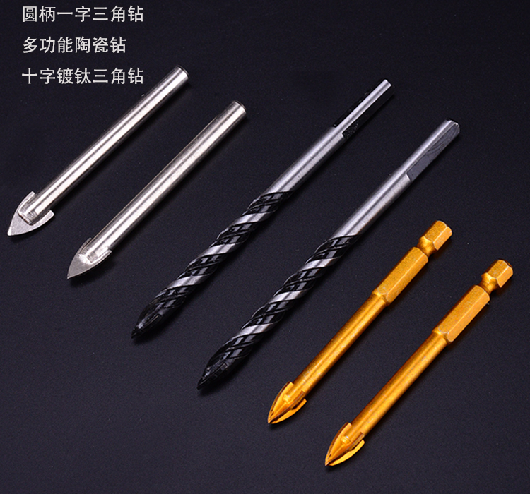 Multifunctional alloy triangle drill glass drill bit tile drill bit cement wall drilling bit lengthened impact drill bit