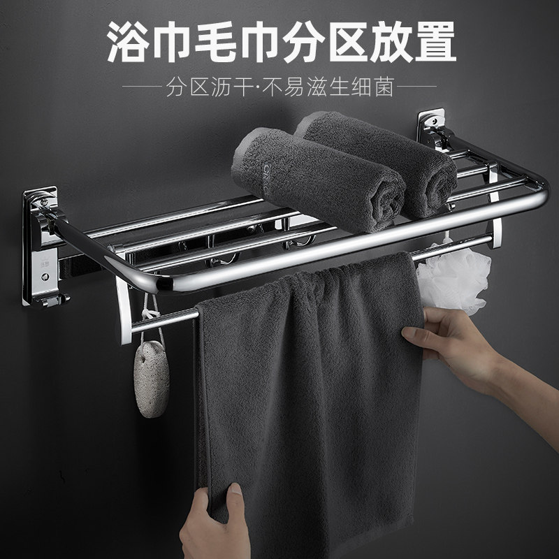 Non-perforated stainless steel towel rack Folding bath towel rack Toilet powder room bathroom shelf Bathroom hardware pendant