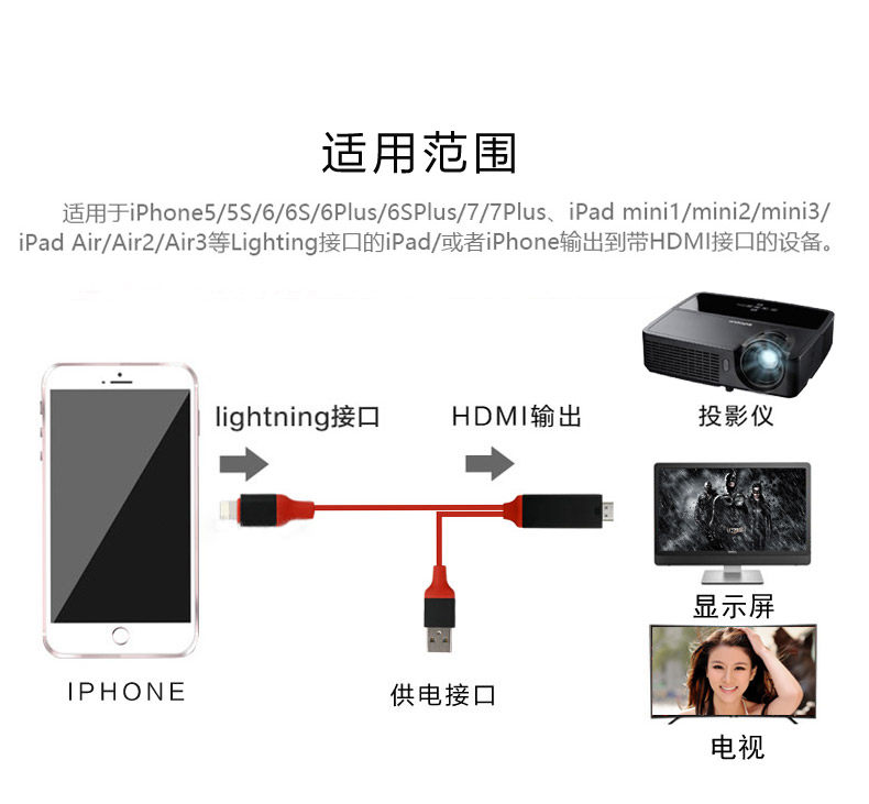 For Apple iphone7 8pro11 12 mobile phone connection BMW Buick Land Rover car HDMI transmission line