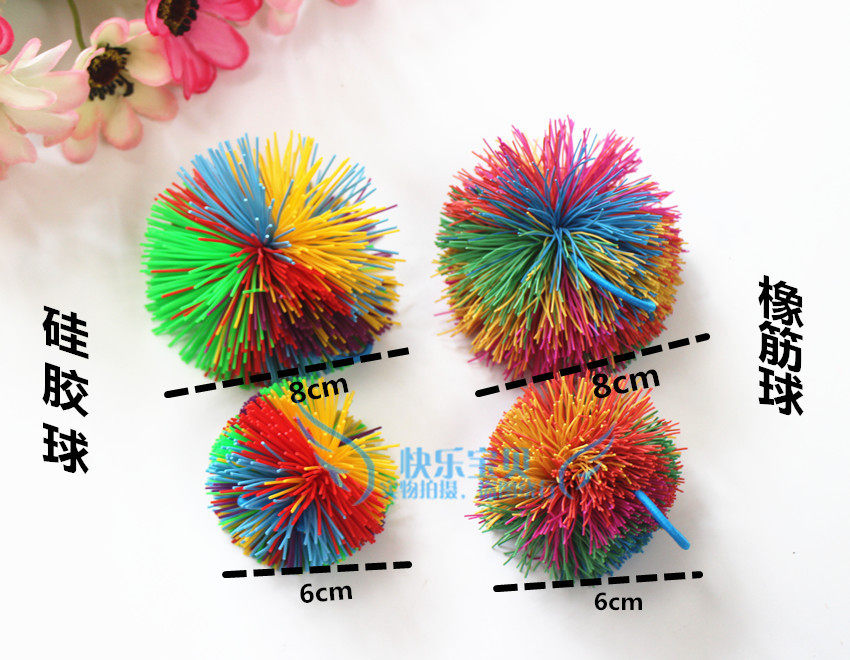 Colorful rubber ball rubber ball kindergarten fun game colorful plush rubber silk ball children kicking shuttlecock toys