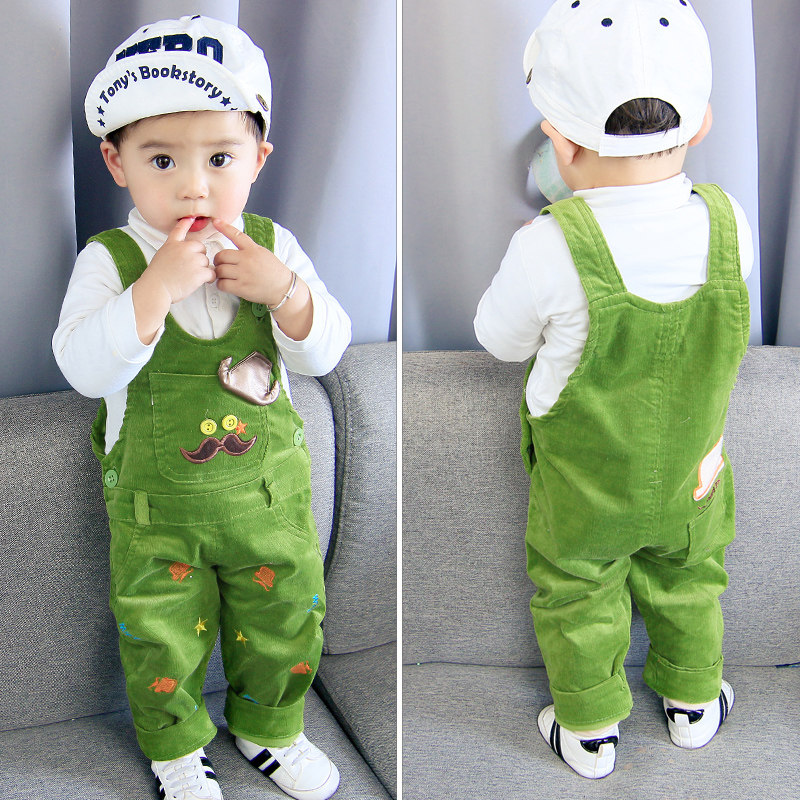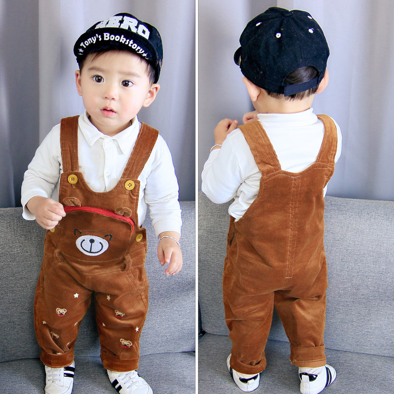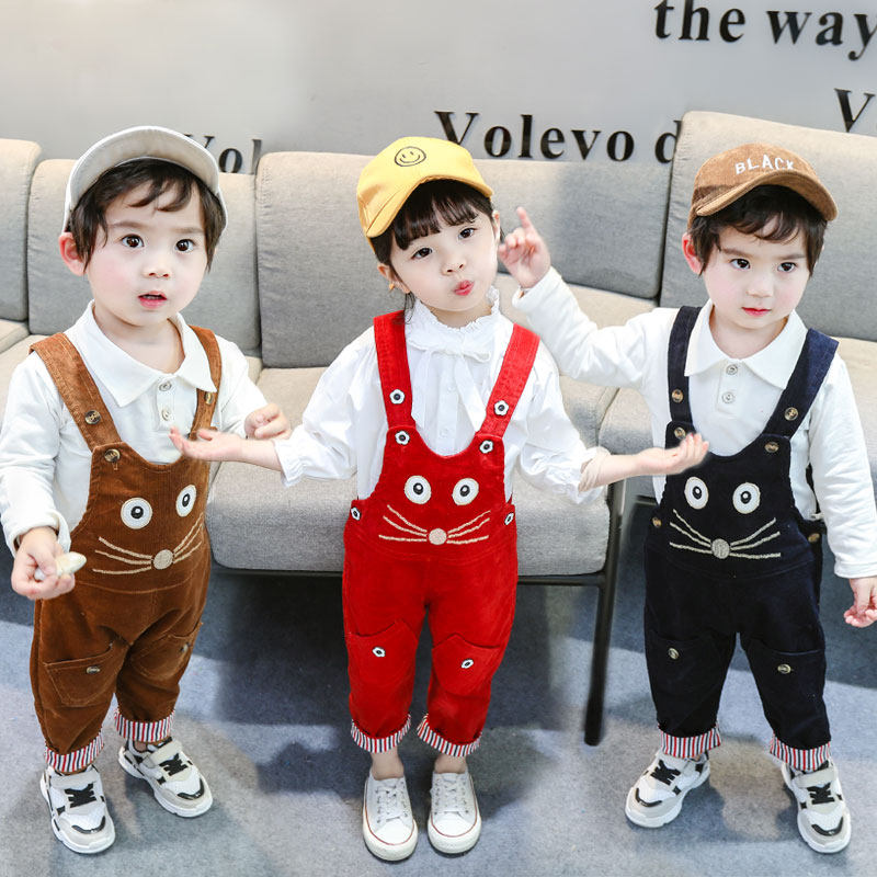2019 spring children's bib pants baby corduroy corduroy trousers baby thin section children's clothing can be opened crotch Siamese