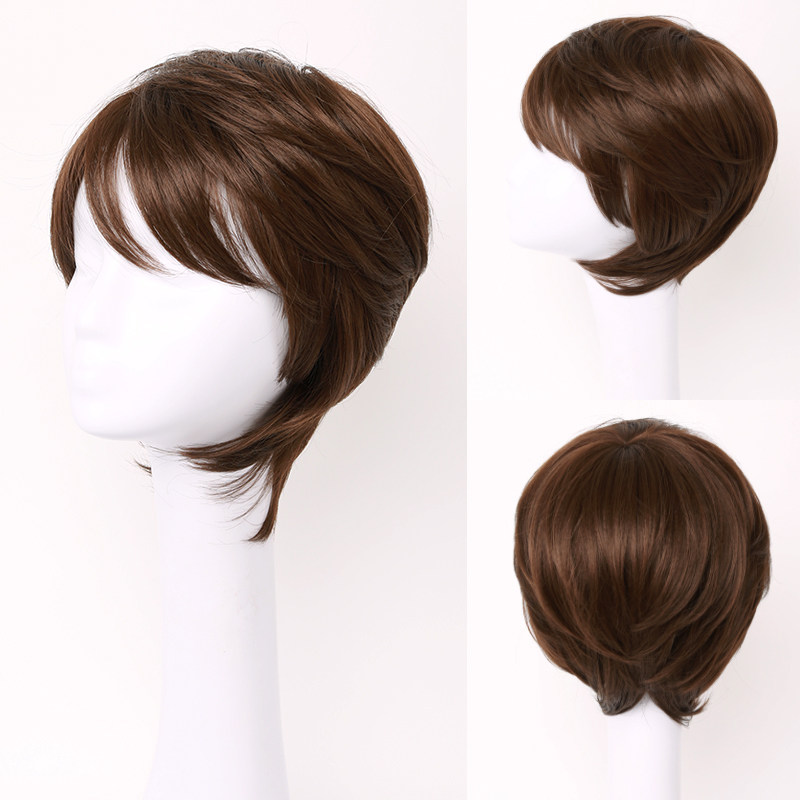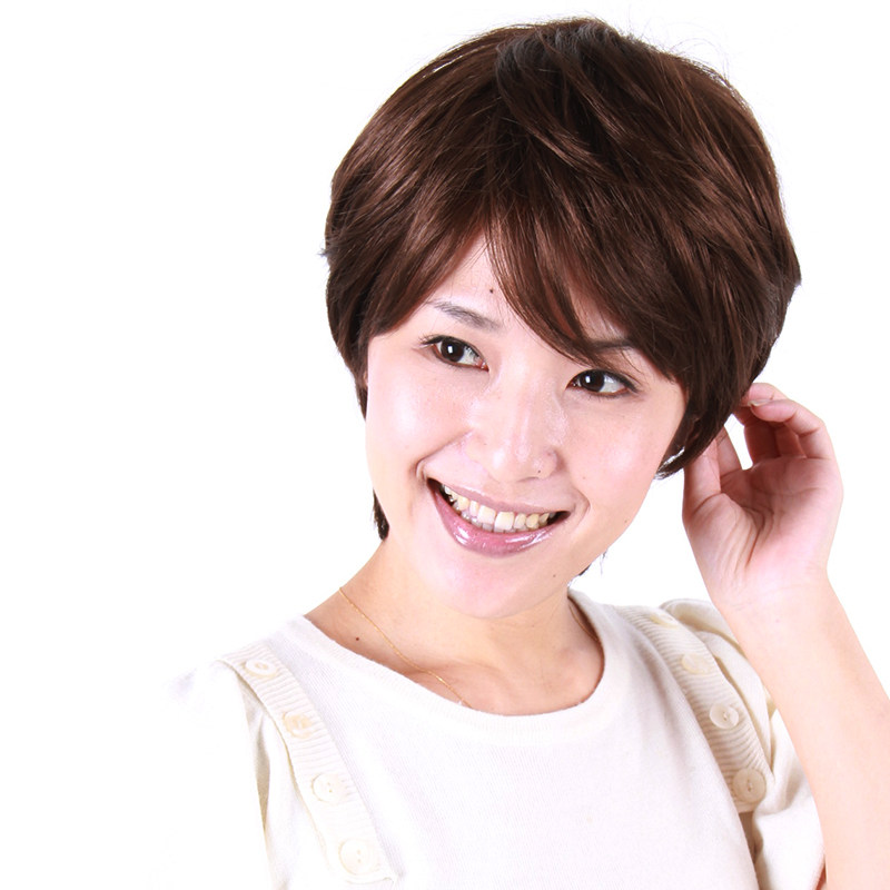 Private meta-gas S14C9 mid-aged lady high temperature silk wig linen slanted slanted sea short curly hair Popo head wig