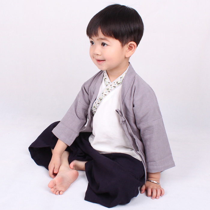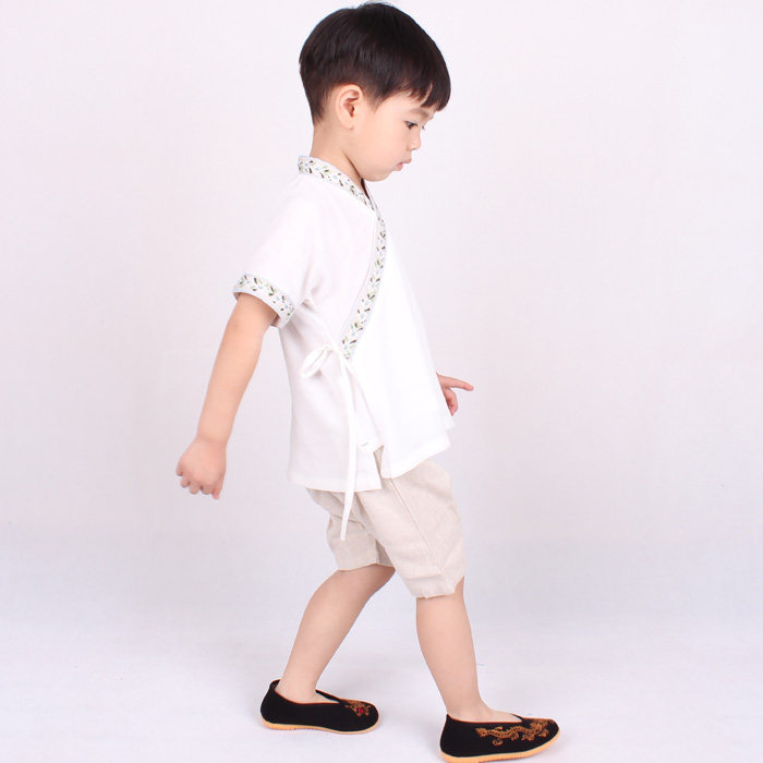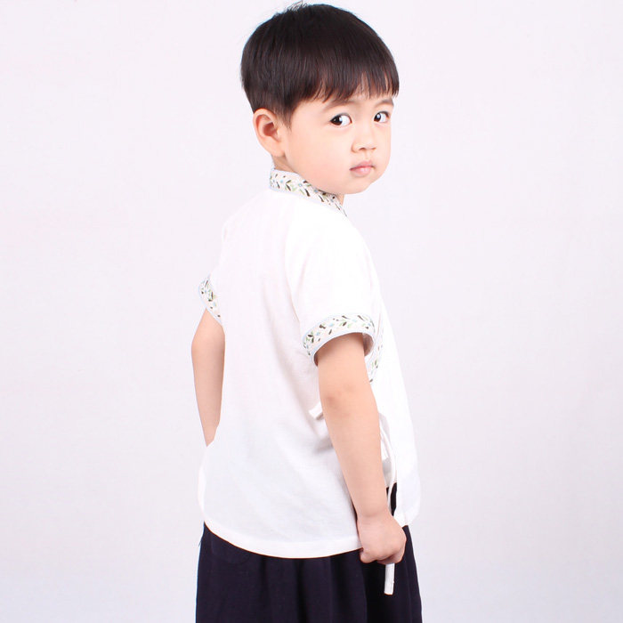 Summer money for children Han clothes male and female short sleeves thin section Improved small monk clothing Daily summer cotton linen embroidered blouse