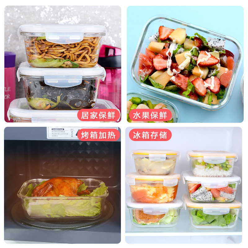 Lekou Lekou flagship store bento box microwave oven lunch box heat-resistant glass bowl sealed storage box refrigerator crisper box