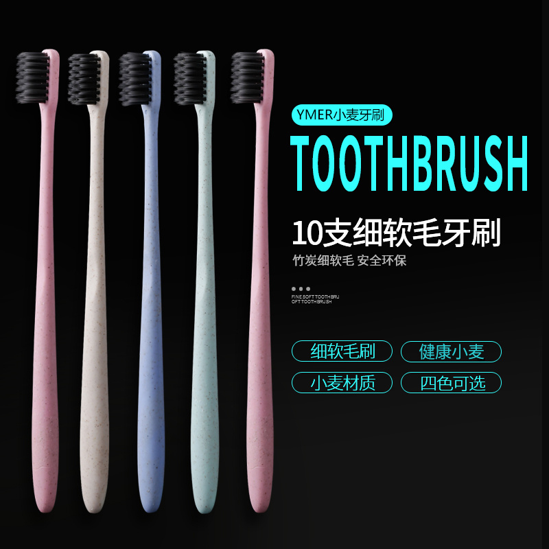 Wheat straw household couple adult models ultra-fine soft hair children's toothbrush small head bamboo charcoal 10 family pack wholesale