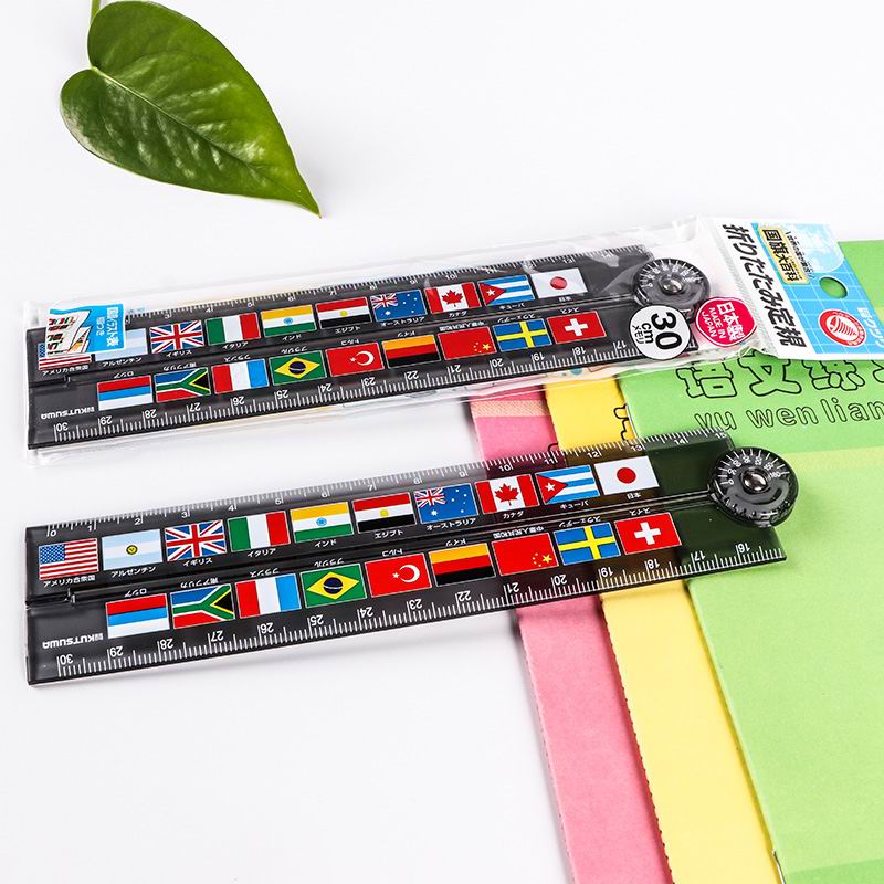 Japan imports kutsuwa children's student folding ruler 30cm National flag pattern