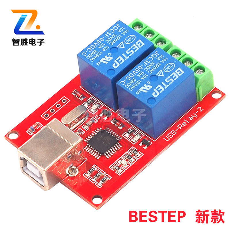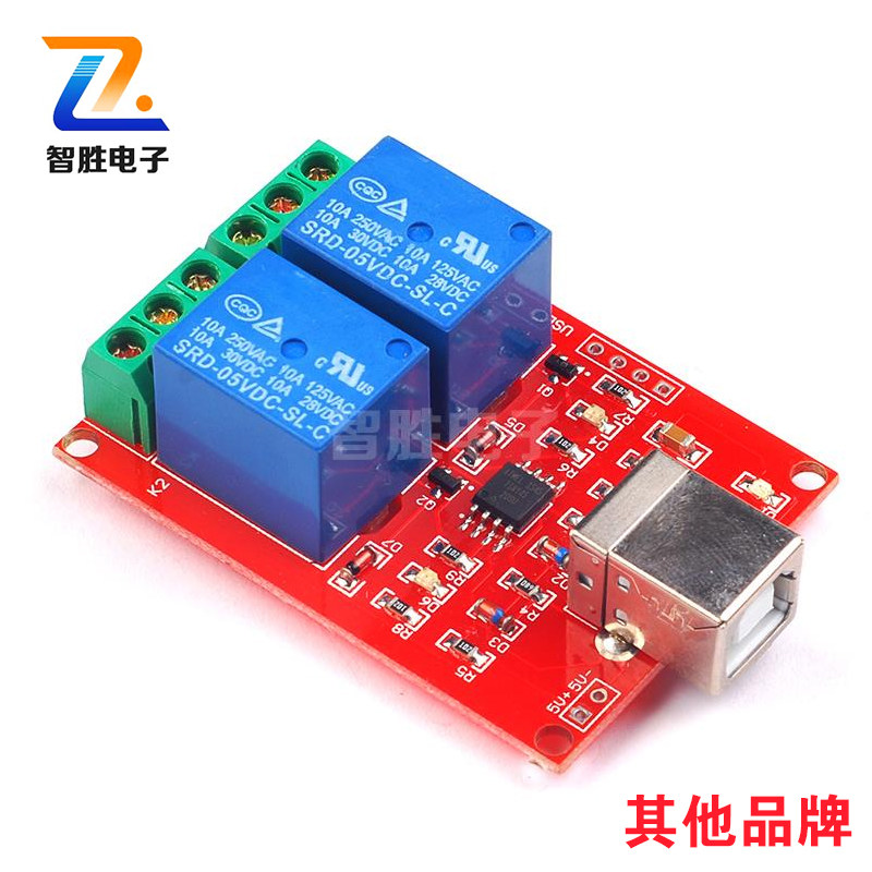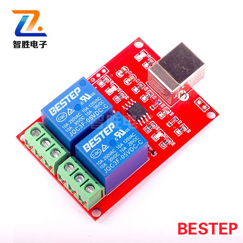 2-way USB relay module free of driving computer control 5v control board usb intelligent control switch 5v relay